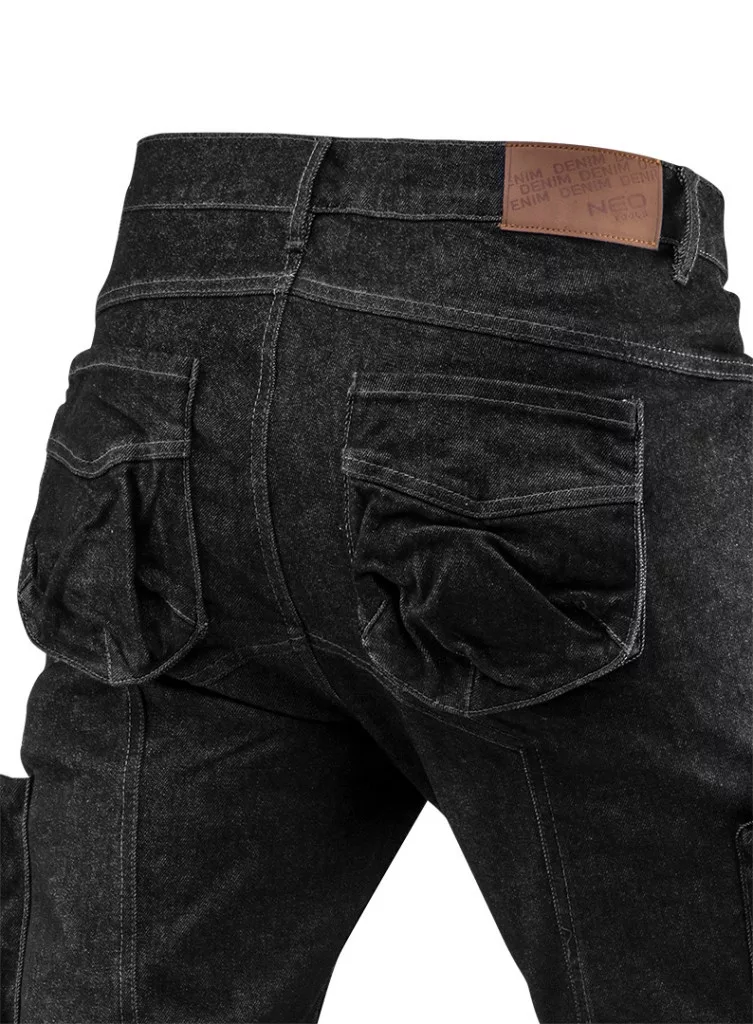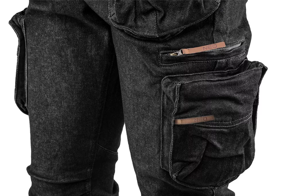 NEO Pantaloni de lucru din blugi, 5 buzunare, negri, 98% bumbac, 2% elastan, întărire la genunchi, L (81-233-L)