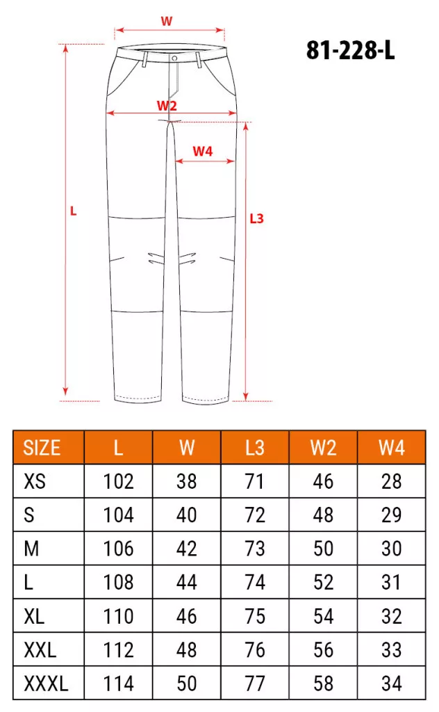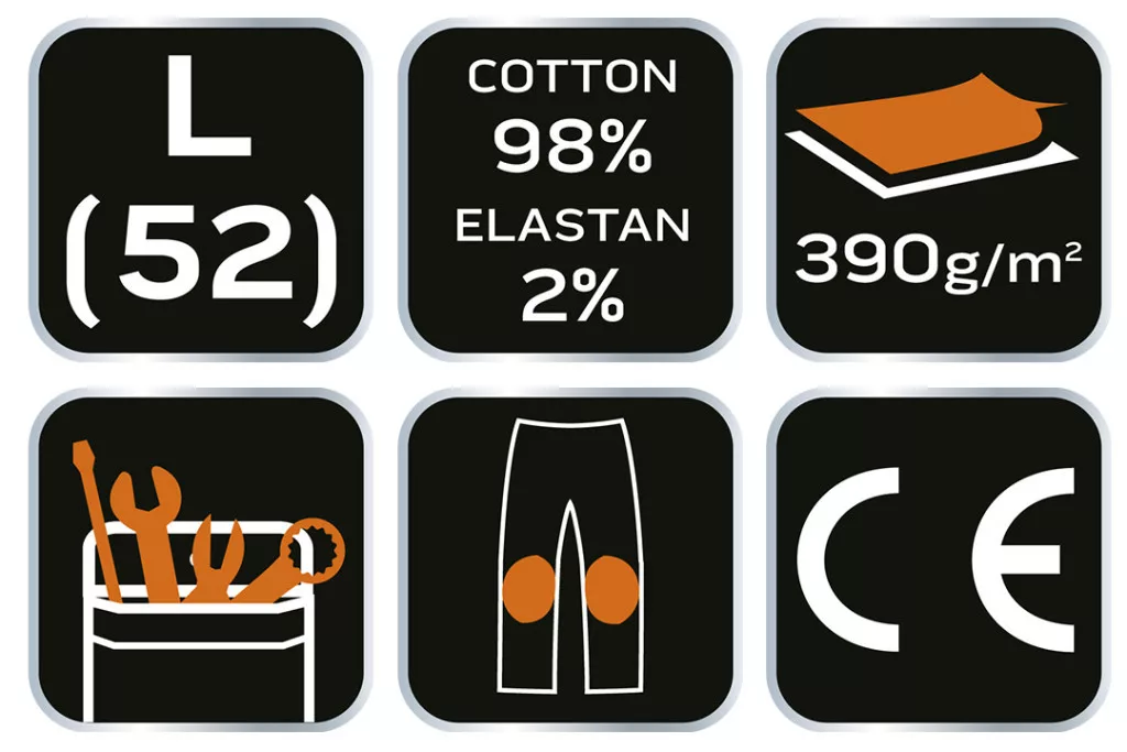 NEO Pantaloni de lucru din blugi, 98% bumbac, întărire la genunchi, 255 g/m², L (81-228-L)