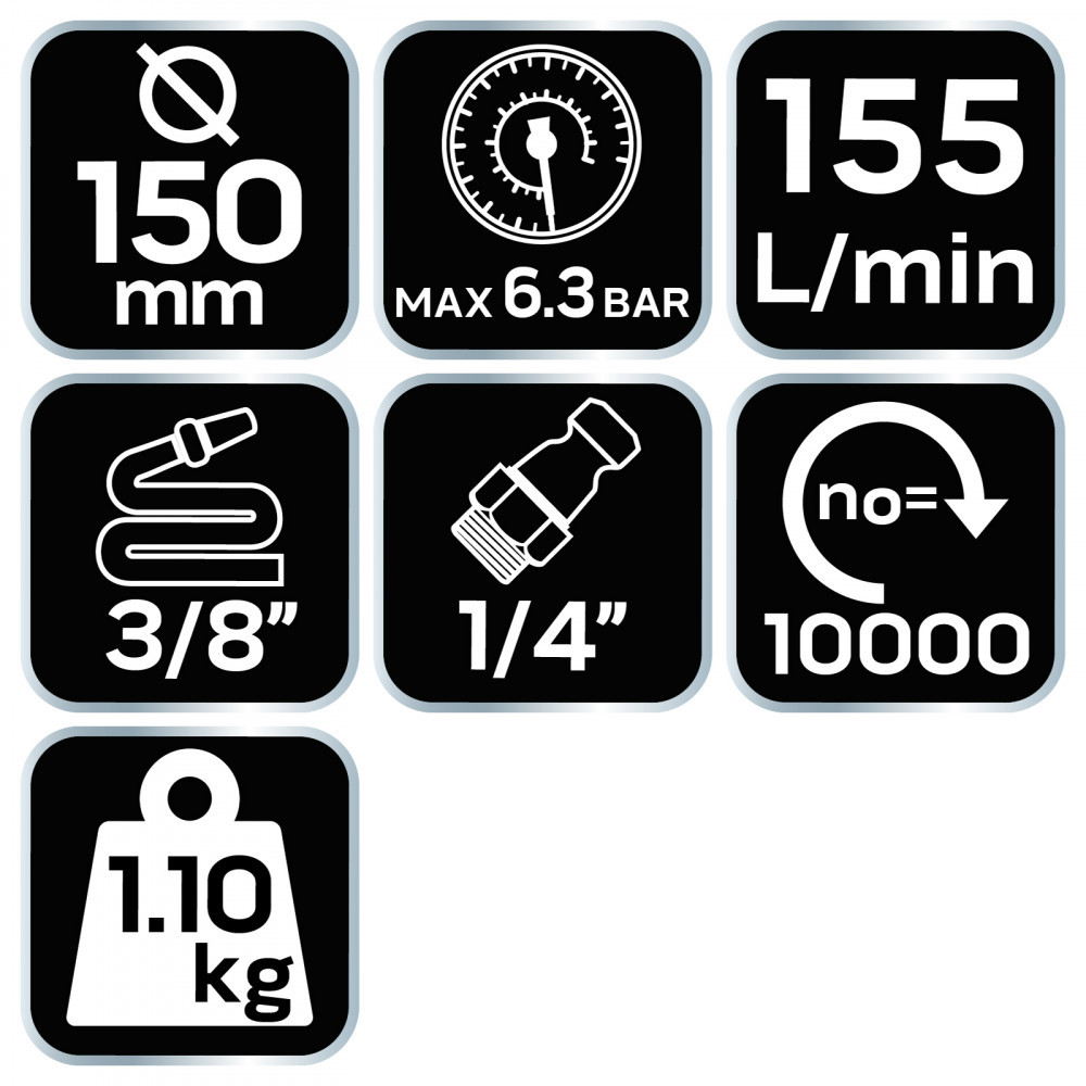 NEO Pistol pneumatic orbital, 150mm, cu sistem de aspirație a prafului (14-013)