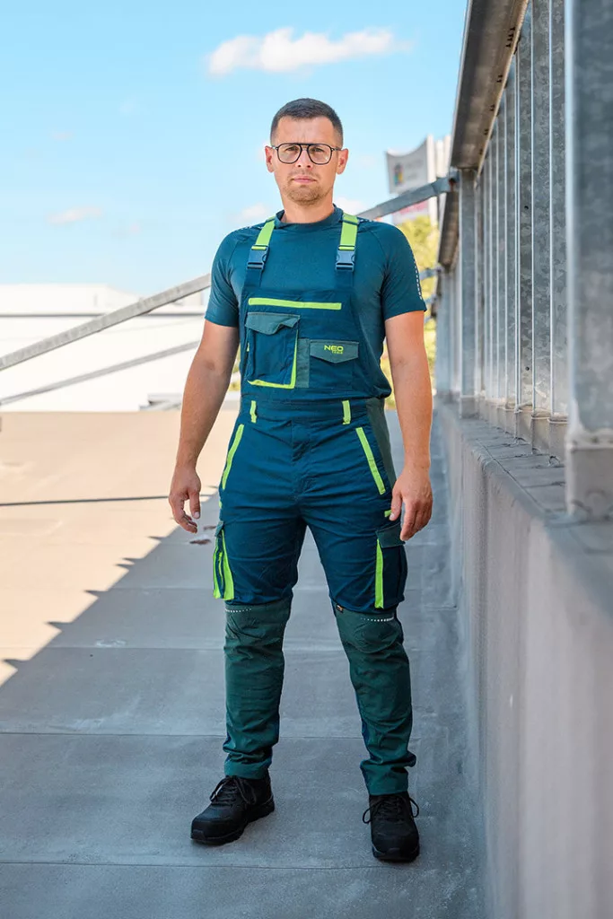 NEO Salopetă de lucru cu bretele PREMIUM, 62% bumbac, 35% poliester, 3% elastan, L (81-246-L)