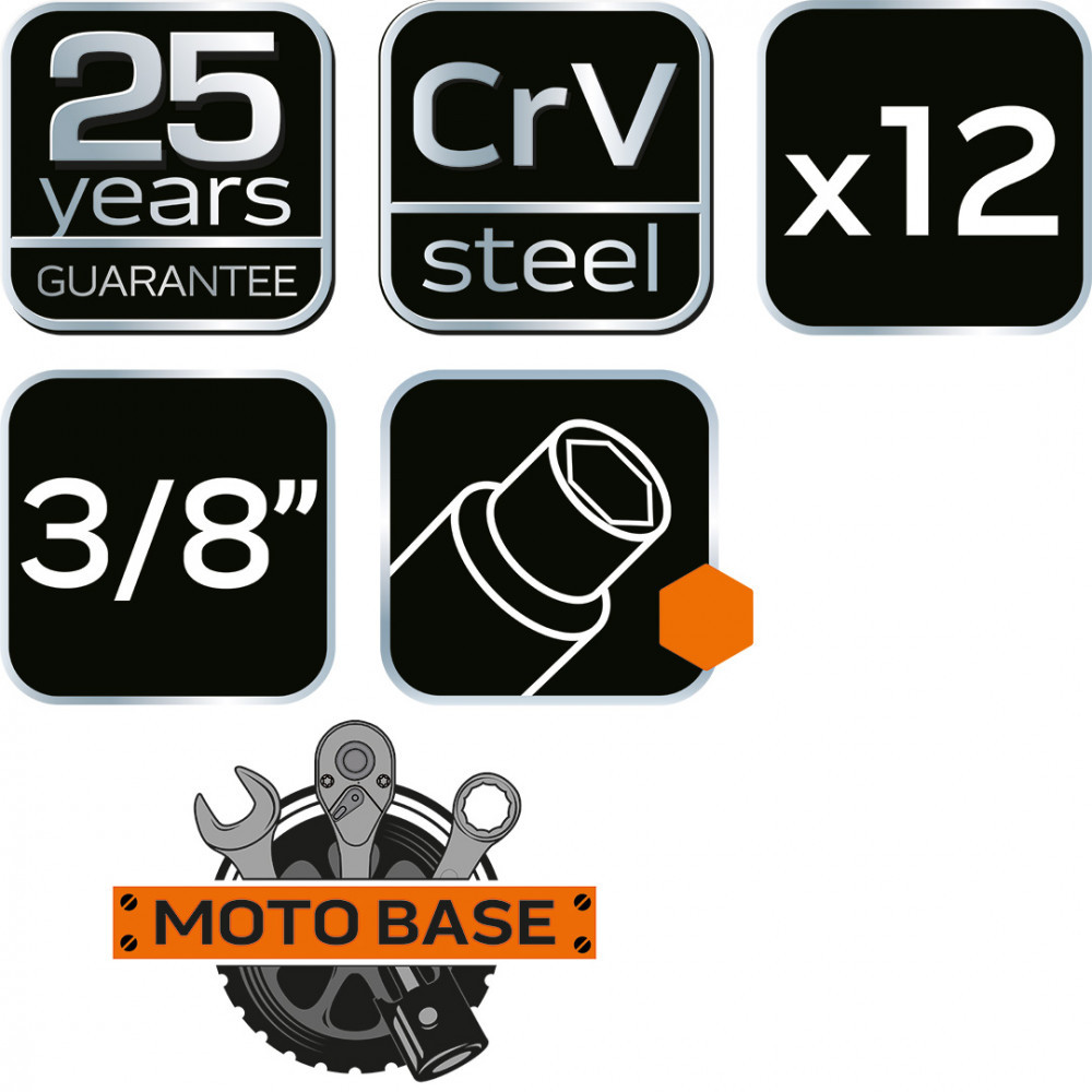 Set chei tubulare NEO 10-020, 12 piese, 3/8”