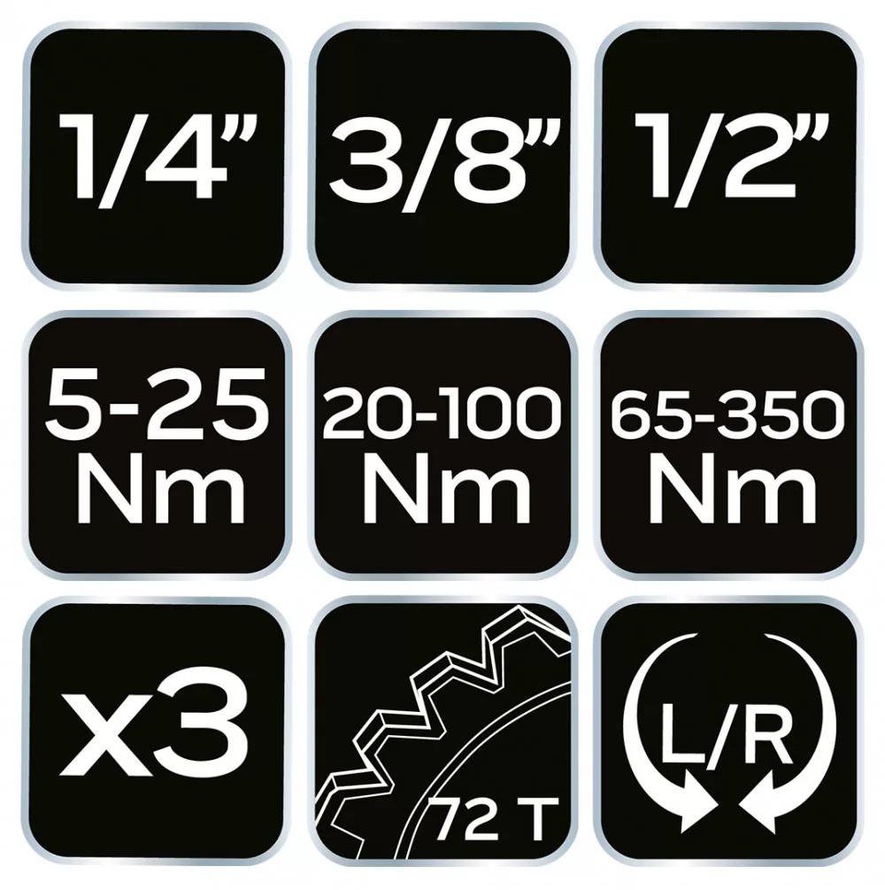 NEO Set de chei dinamometrice 1/4", 3/8", 1/2", 3 bucăți (08-843)