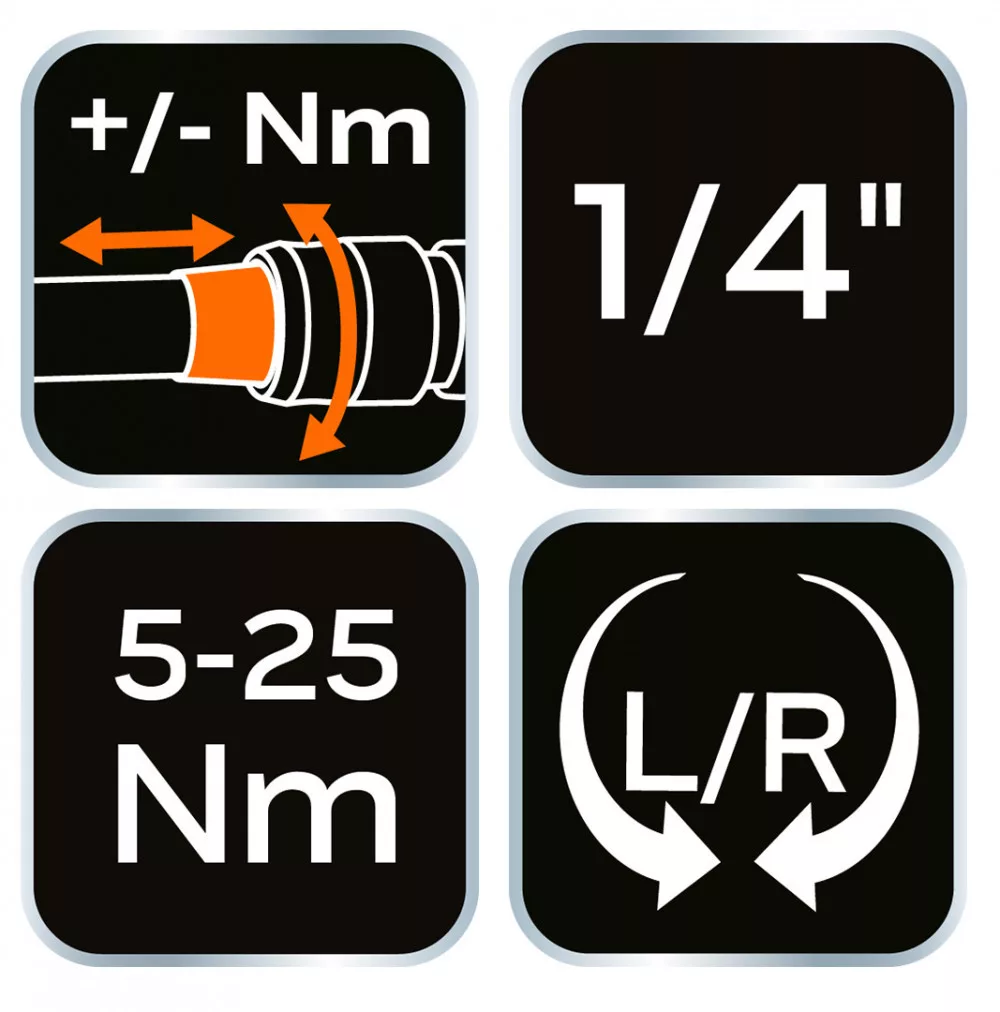 NEO Set de chei dinamometrice 1/4", 5-25Nm, 21 bucăți (08-821)