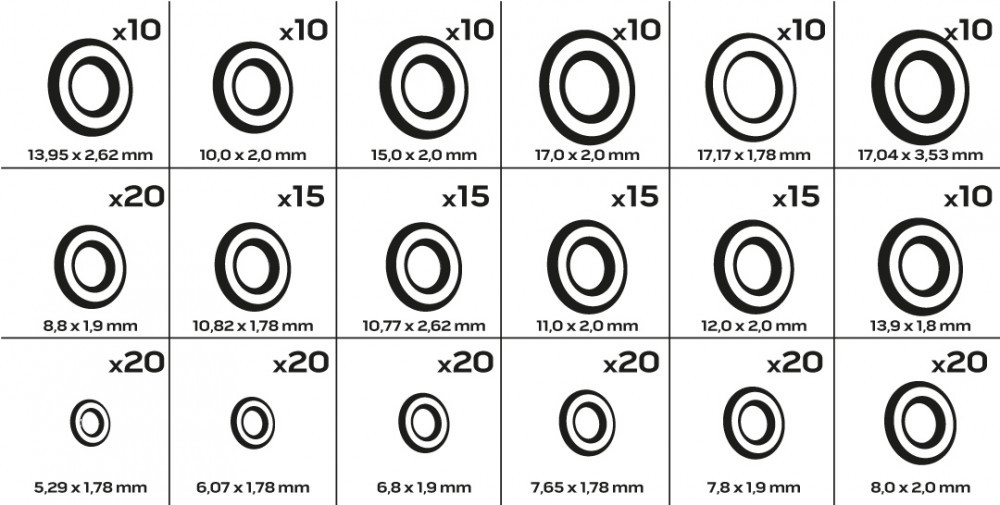 NEO Set de garnituri (O-ring HNBR) pentru climatizare auto, 270 bucăți (11-976)