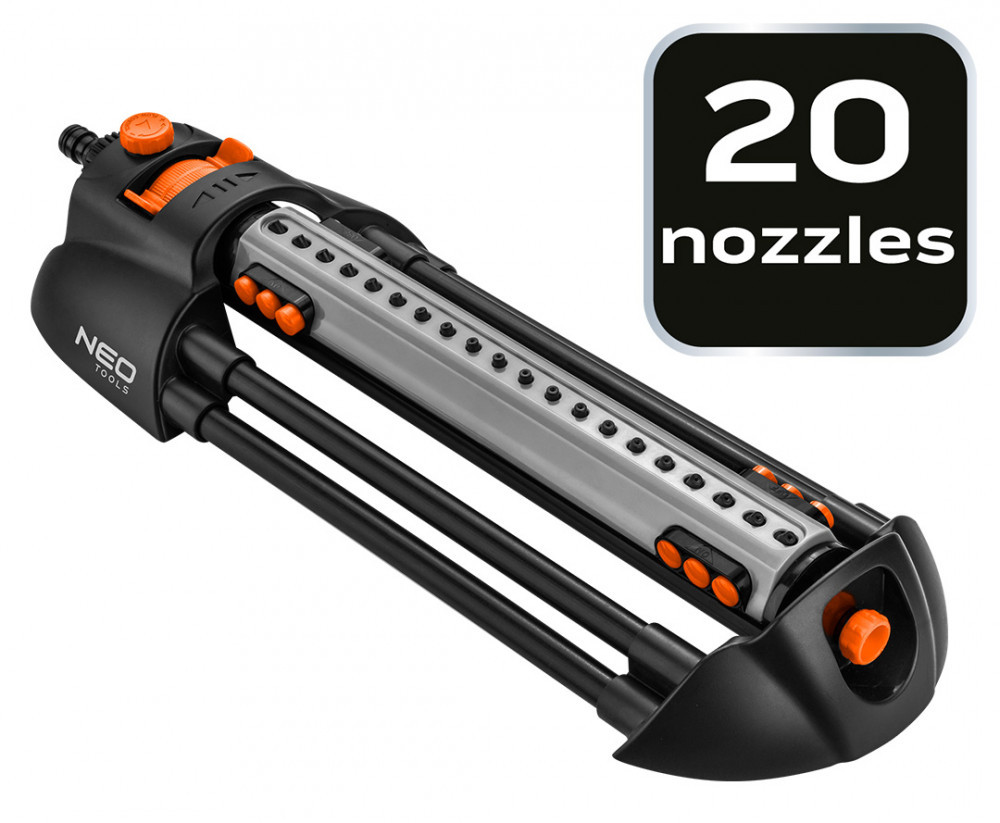 NEO Sprinkler pătrățos, înclinat, pentru irigare, 320 m2, 20 duze, ajustare a forței jetului, reglare individuală a duzelor (15-772)