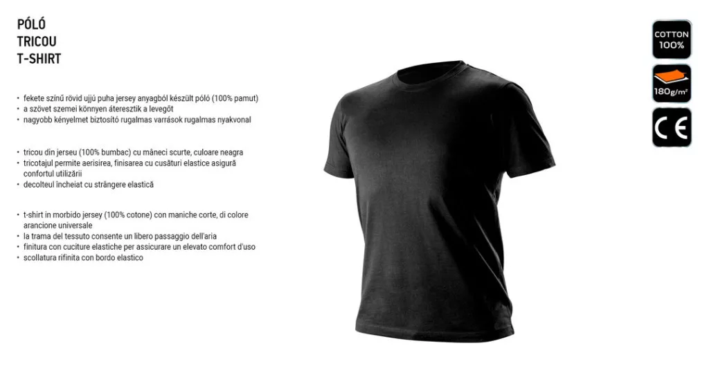 NEO Tricou, negru, 100% bumbac, XL (81-610-XL)