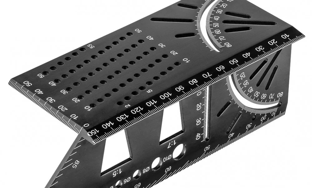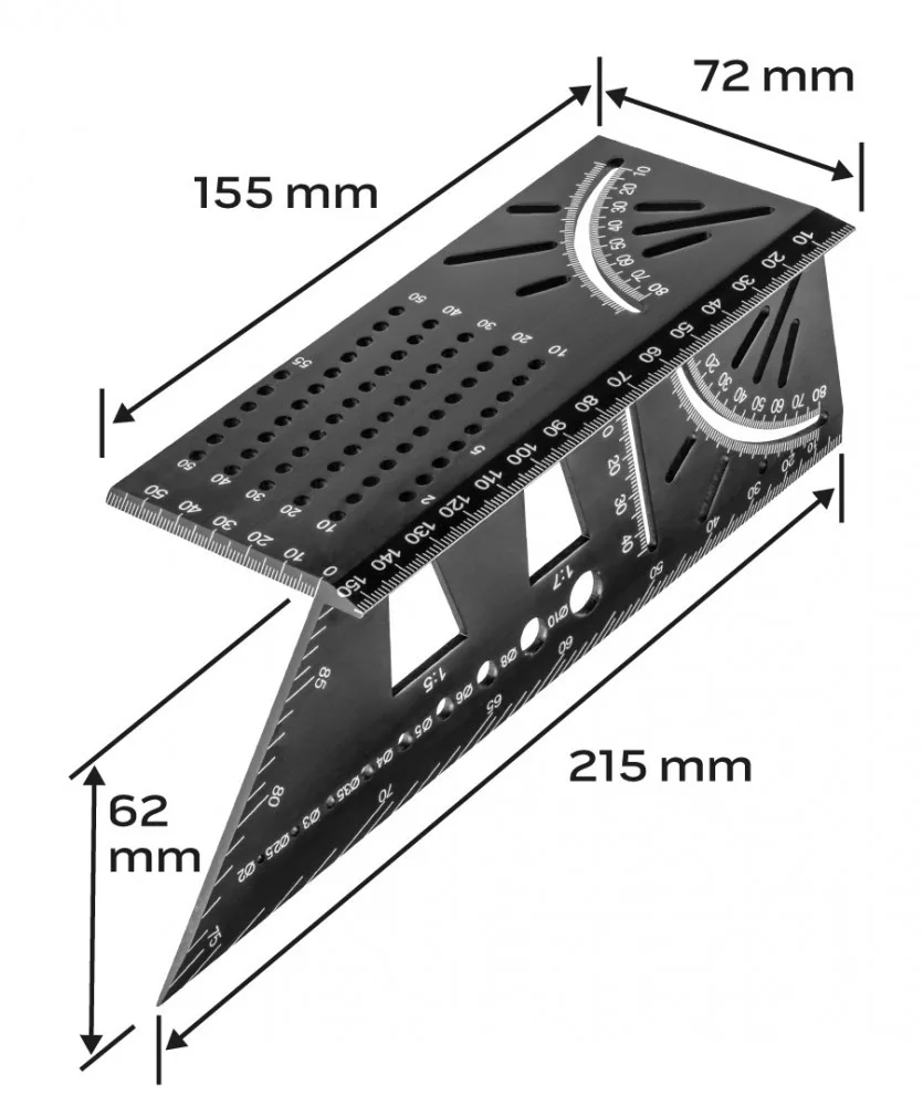 NEO Șablon de marcaj 3D, unghi drept, riglă, goniometru, aliaj de aluminiu (72-115)