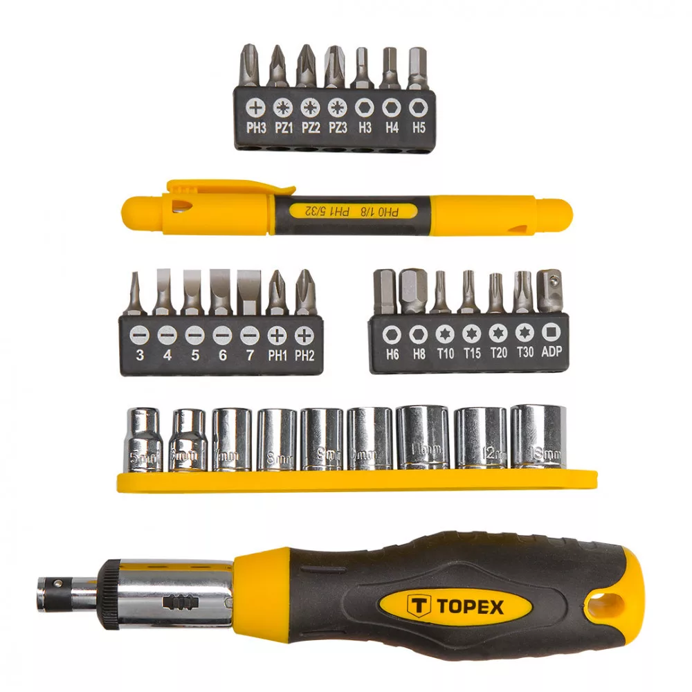 TOPEX Set de șurubelnițe 34buc, cu manivelă (39D522)