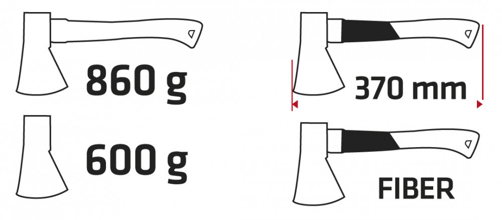 VERTO Topor 860g, cap 600g, mâner din fibră de sticlă (05G201)