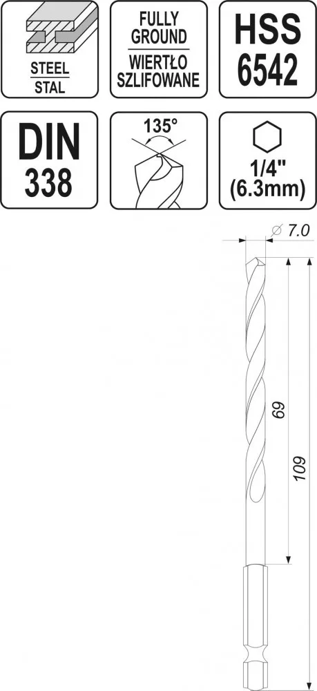 YATO Burghiu metal imbus 7,0 mm HSS 6542 (YT-44874)