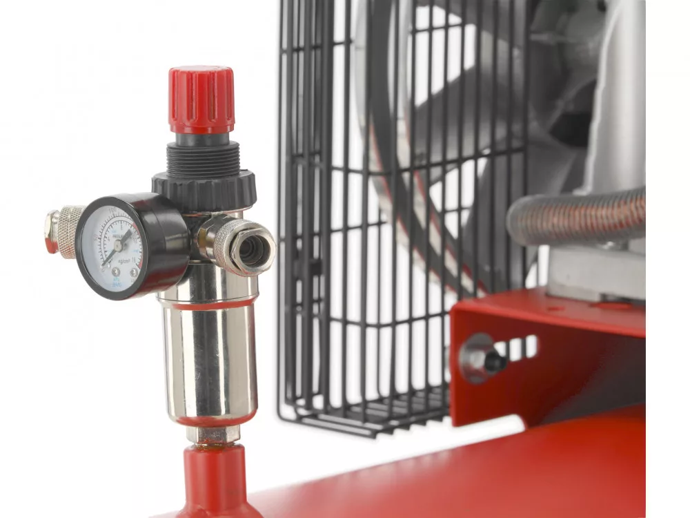 Compresor de ulei cu două conexiuni și control al presiunii. Este utilizat pentru acționarea echipamentelor cu aer comprimat, suflarea găurilor de foraj și curățarea suprafețelor. Este un sprijin de neînlocuit în industrie, construcții, ateliere și agricultură.