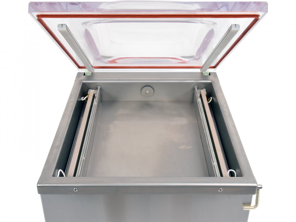 Construcția din oțel inoxidabil oferă durabilitate și igienă, fiind ușor de întreținut în medii profesionale. Camera de vid este suficient de spațioasă pentru ambalarea produselor voluminoase, iar capacul transparent permite monitorizarea procesului în timp real.