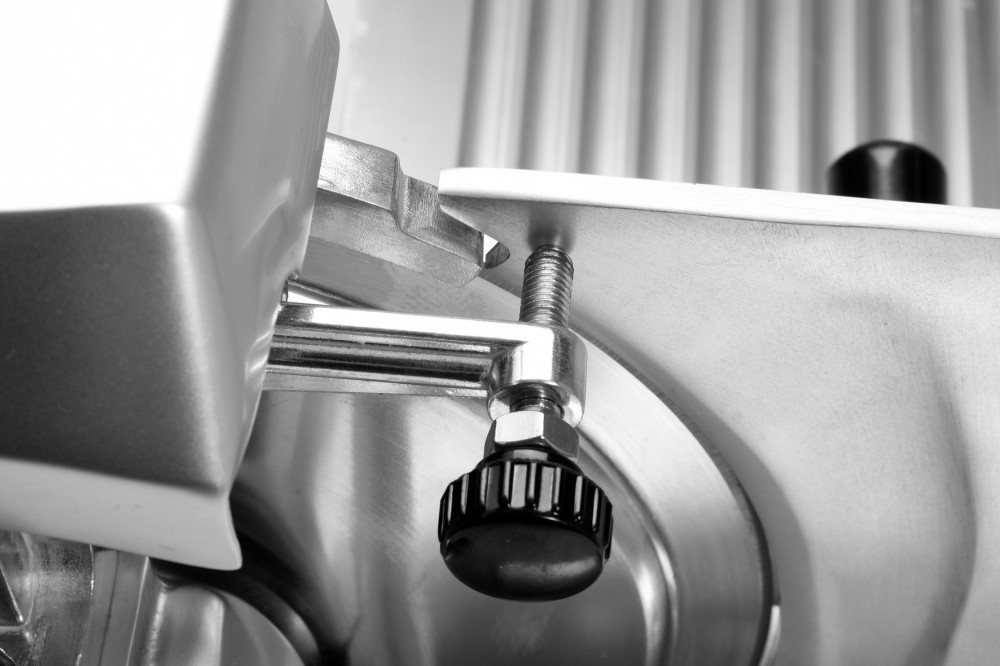 Datorită discului de 220 mm, aceasta permite felierea produselor cu diametru de până la 150 mm, iar reglajul precis al grosimii oferă flexibilitate în funcție de necesități. Sistemul de tăiere înclinat facilitează procesul, deoarece produsul este presat natural pe lamă prin gravitație, reducând efortul operatorului.