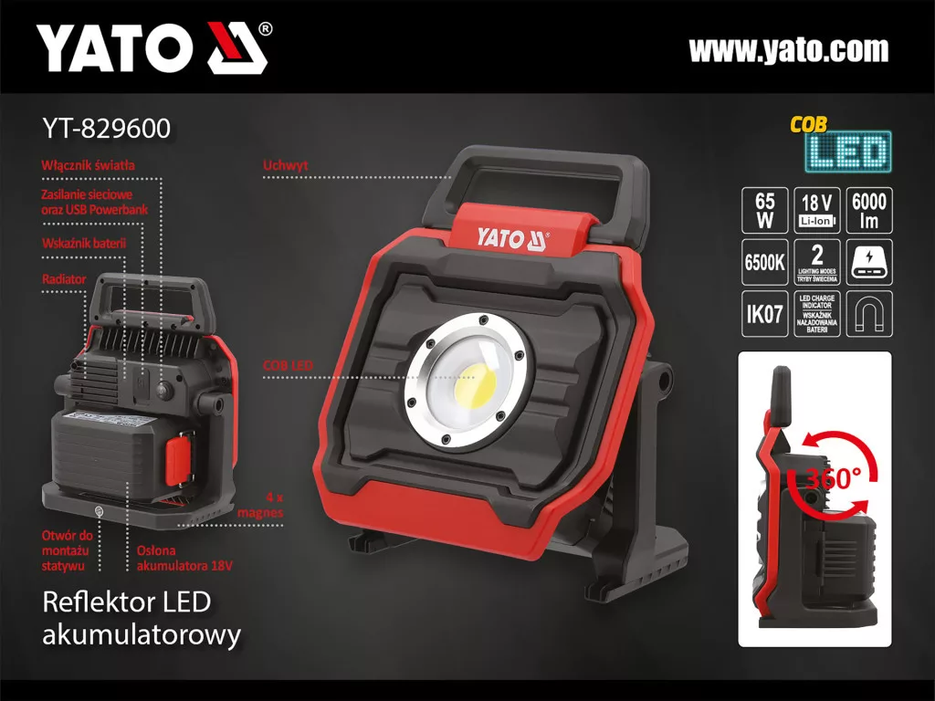 YATO Proiector LED cu acumulator 18V, 6000 LM (YT-829600)