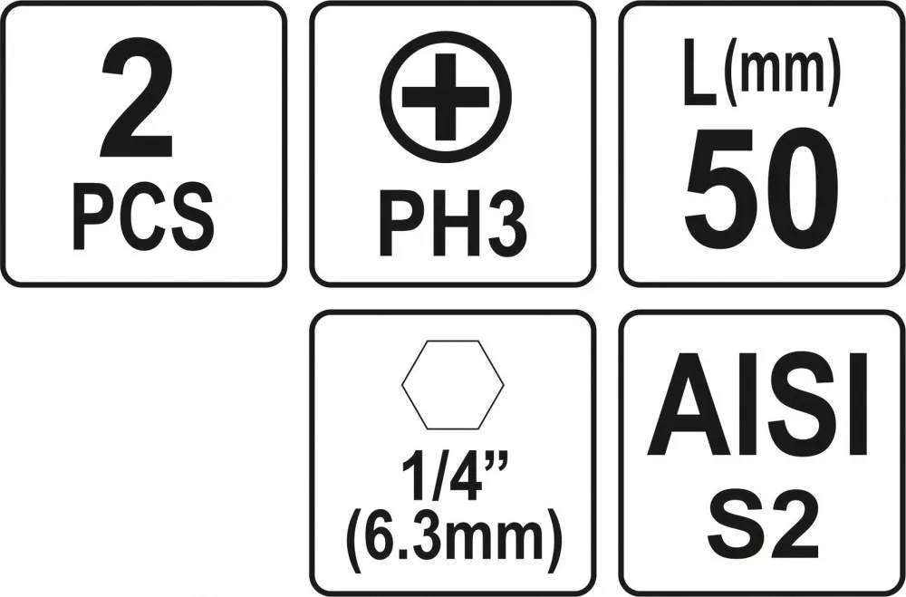 YATO Set 2 biți 50 mm 1/4 PH3 (YT-77877)
