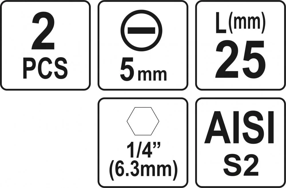 YATO Set biți 1/4" 25 mm, 5 mm, 2 buc. (YT-77892)