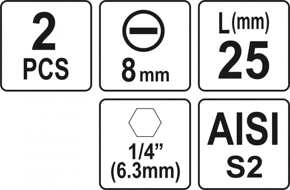 YATO Set biți 1/4" 25 mm, 8 mm, 2 buc. (YT-77894)