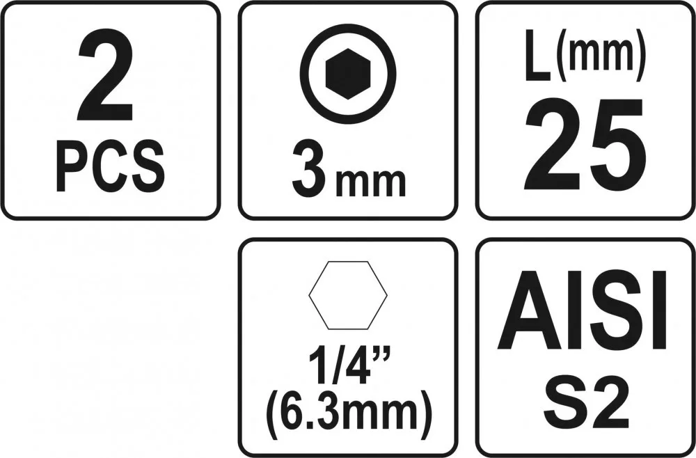 YATO Set biți imbus 25 mm 1/4 H4, 2 buc. (YT-77921)