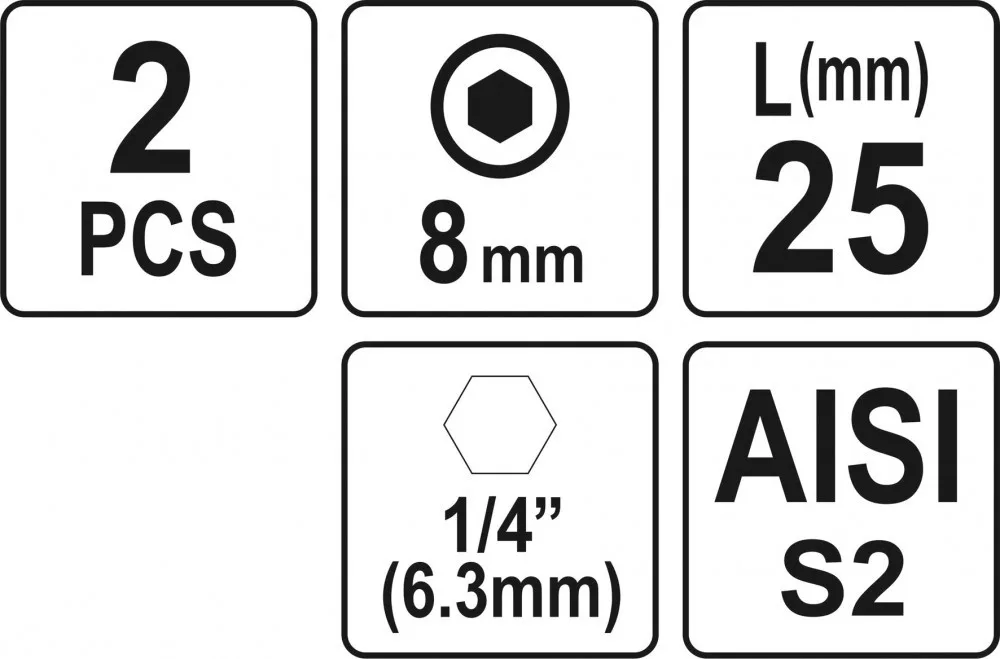 YATO Set biți imbus 25 mm 1/4 H8, 2 buc. (YT-77924)