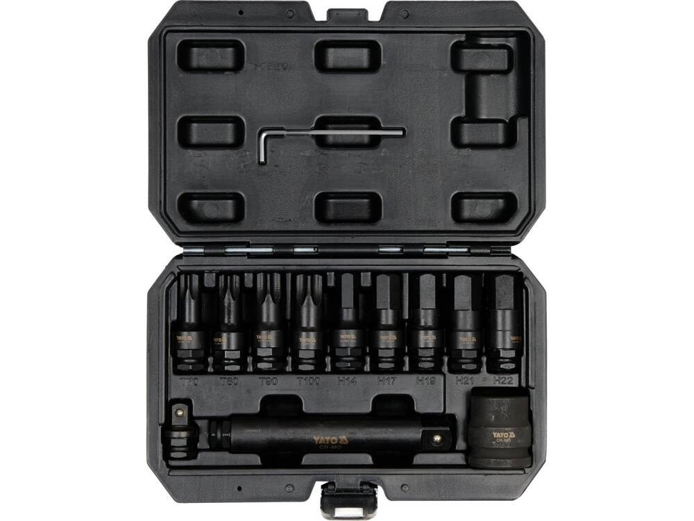 YATO Set biți tubulari lungi 12 piese Torx și Imbus 1/2", 3/4" pentru camioane CrMo (YT-10655)