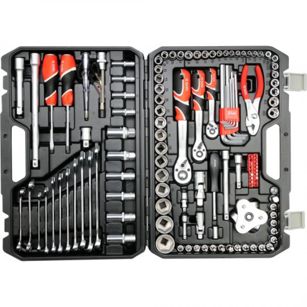 YATO Set chei tubulare pentru mecanici auto 126 piese 1/2": 20–32 mm, 1/4": 4–13 mm, 3/8": 9–19 mm CrV