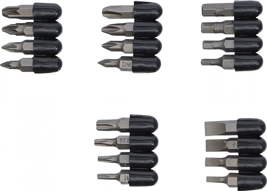 Pachet de livrare:Biti, lama dreapta 3 - 4,5 - 6 - 7 mmBiti, cap cruce PH0 - PH1 - PH2 - PH3Biti, cap cruce PZ0 - PZ1 - PZ2 - PZ3Biti, Profil T (pentru Torx) T10 - T15 - T20 - T30Biti, hexagon interior 3 - 4 - 5 - 6 mm