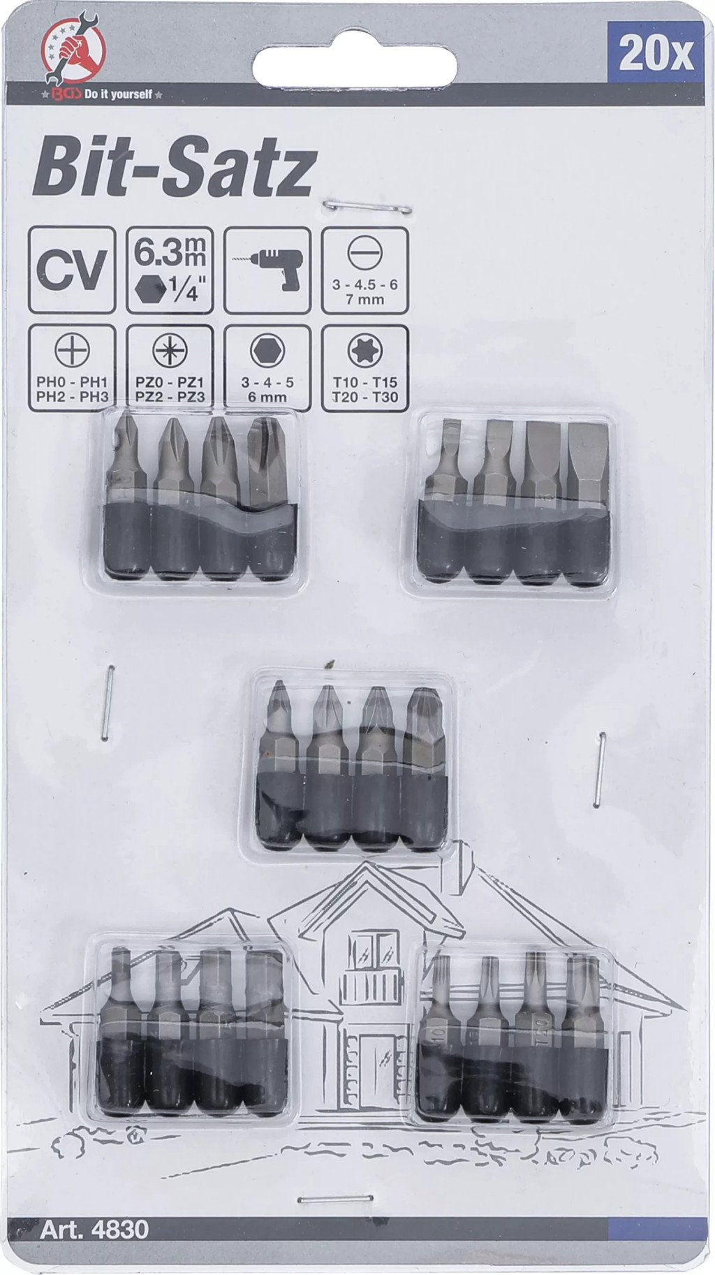 BGS DIY Set biţi | Antrenare hexagon exterior 6,3 mm (1/4") | 20 piese (BGS 4830)