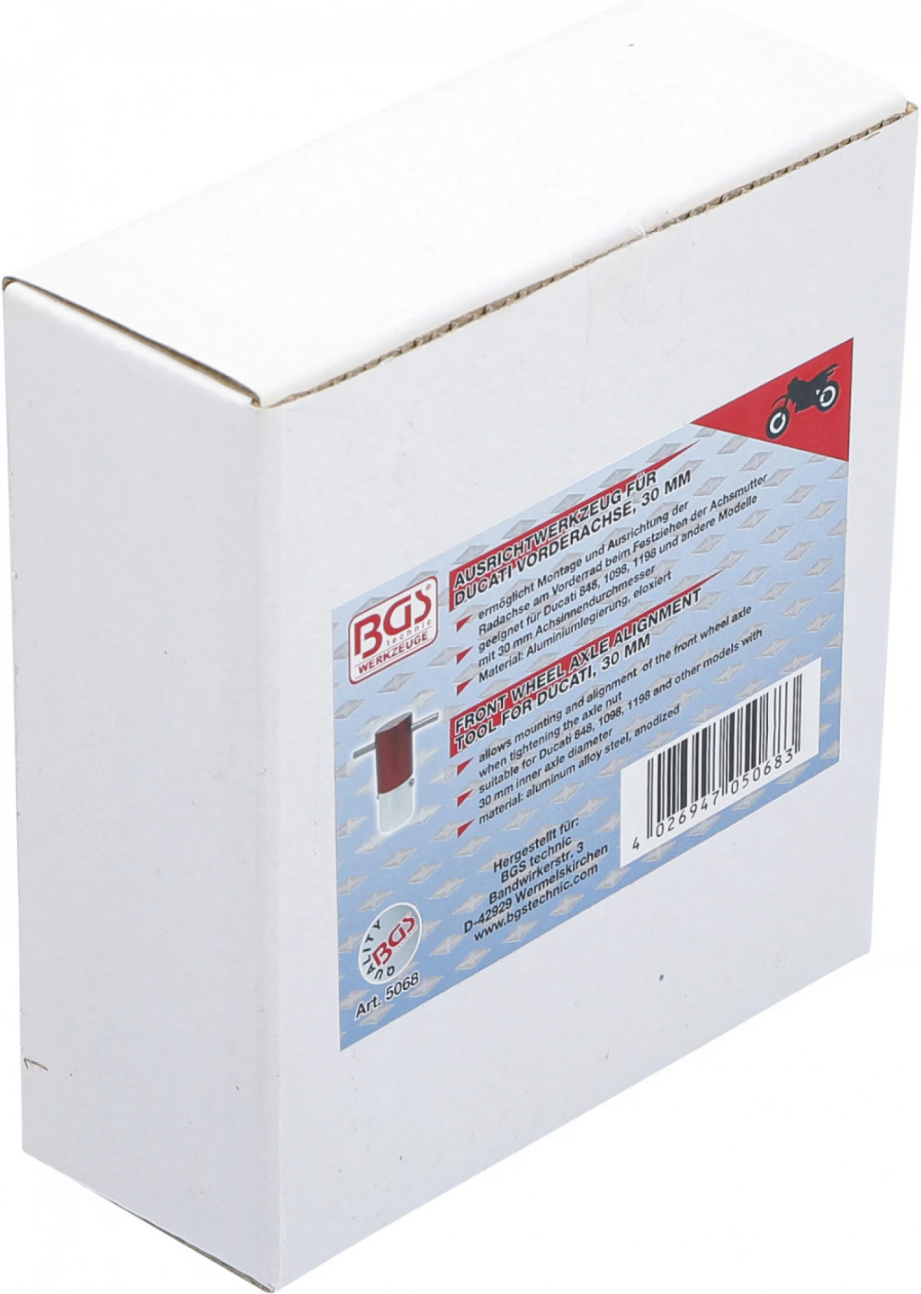 Descriere: - permite montarea si alinierea axei rotii din fata atunci când strângeti piulita axului - potrivit pentru modelele Ducati 848, 1098, 1198 si alte modele cu diametrul interior al axului de 30 mm - material: otel aliat cu aluminiu, anodizat Date tehnice Material Aluminiu, aliat Îmbunatatire calitate suprafata Eloxat Greutatea bruta 216 g