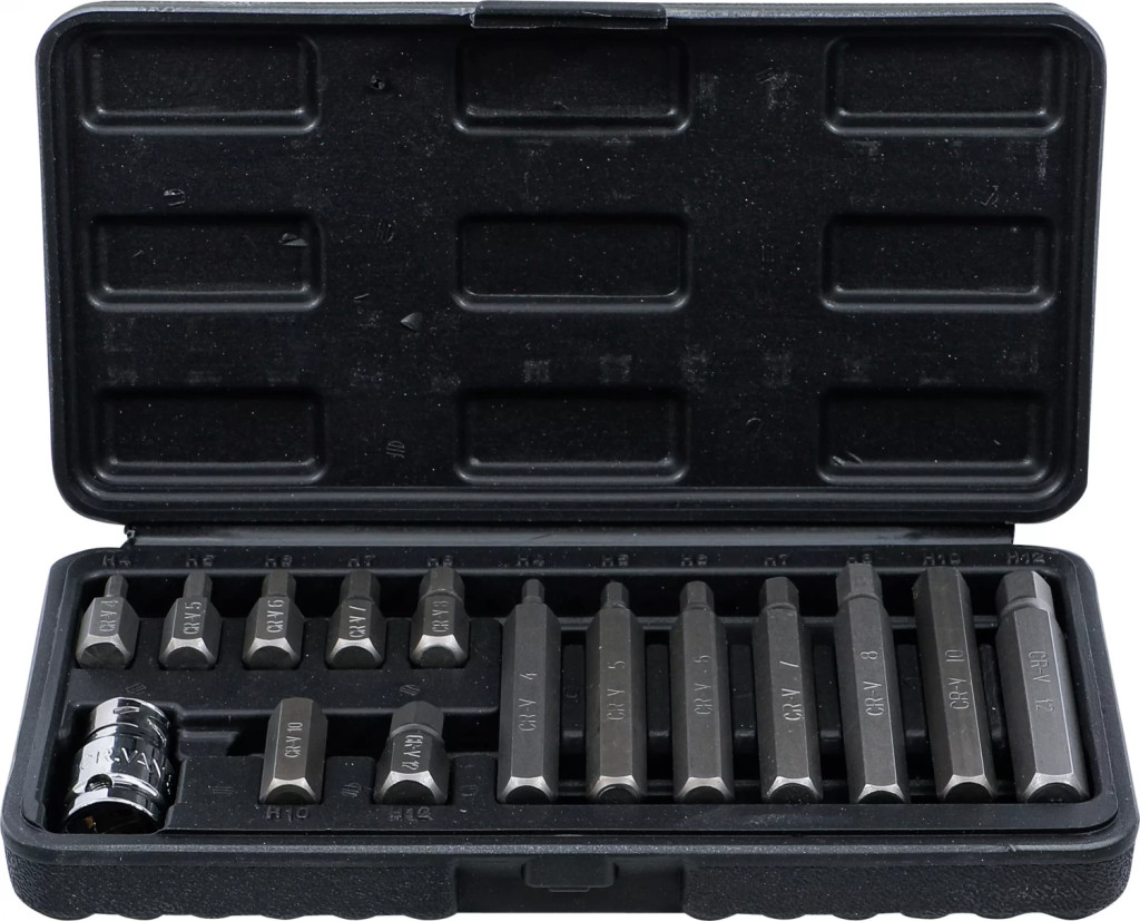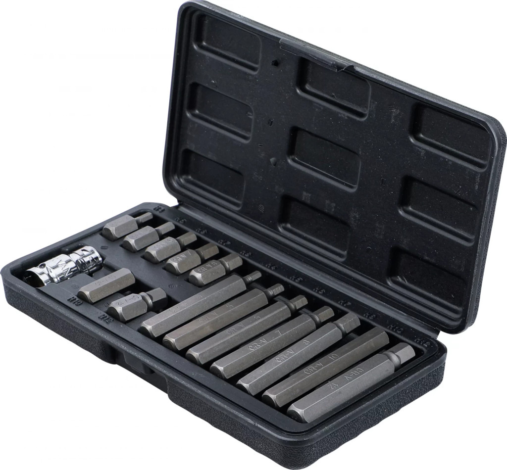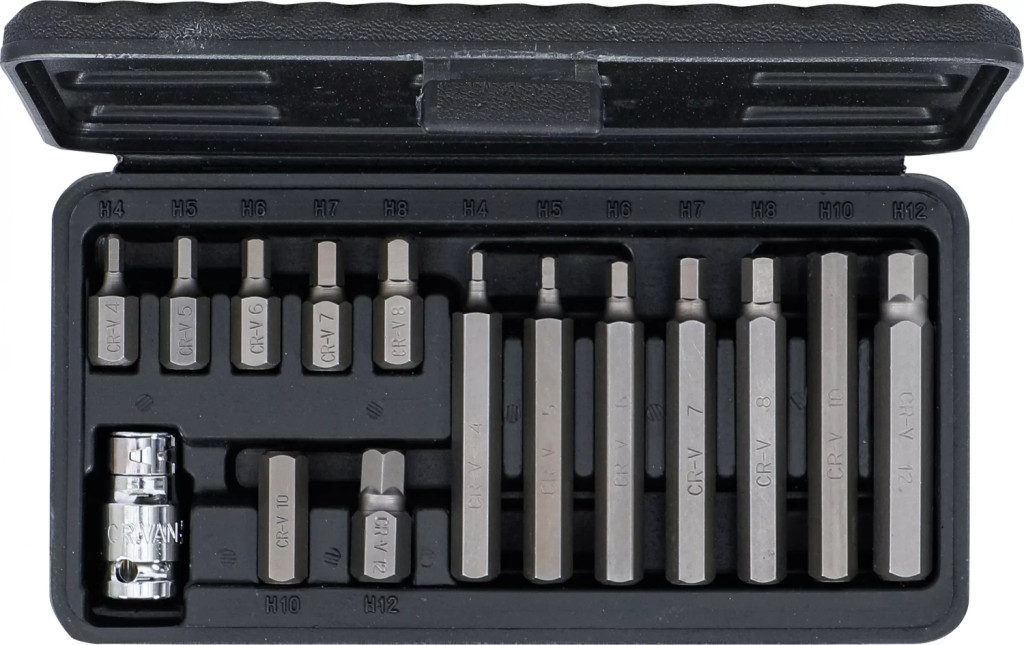 Pachet de livrare:Biti, scurti, 30 mm, hexagon interior 4 - 5 - 6 - 7 - 8 - 10 - 12 mmBiti, lungi, 75 mm, hexagon interior 4 - 5 - 6 - 7 - 8 - 10 - 12 mmAdaptor, Actionare 12,5 mm (1/2")