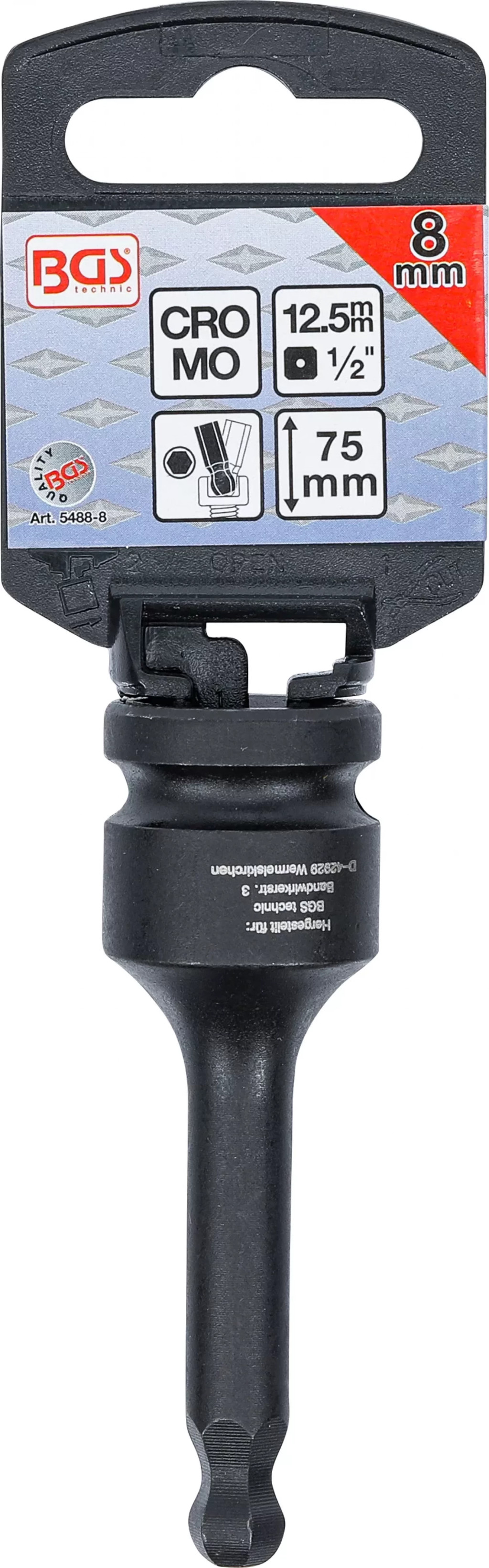 BGS technic Cap bit de impact | Lungime 75 mm | 12,5 mm (1/2") | hexagon interior cu cap sferic 8 mm (BGS 5488-8)