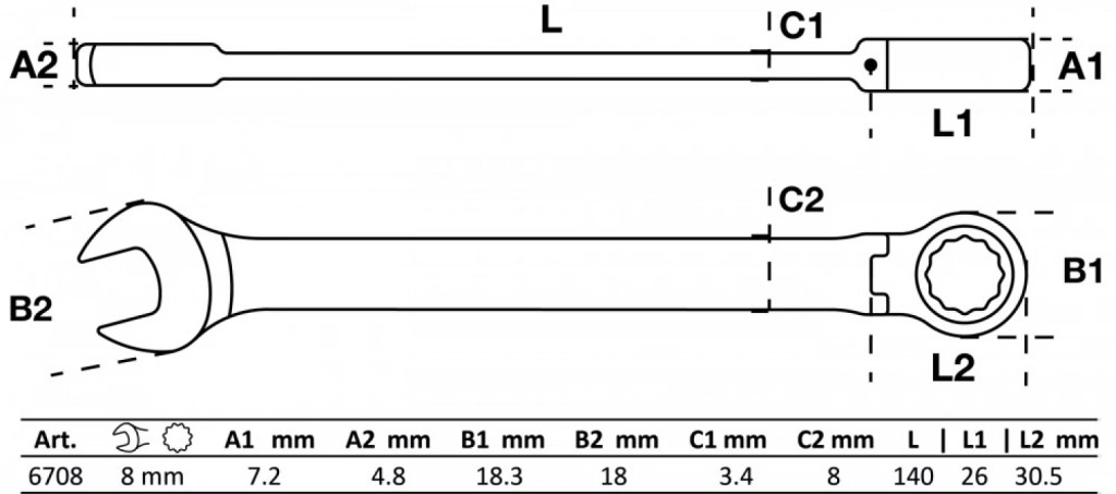 Deschidere cheie 1 8 mm