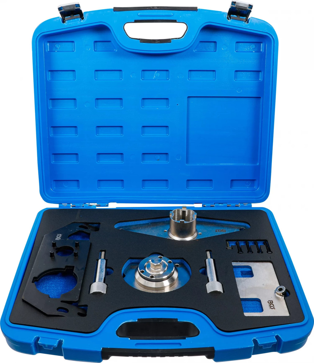 pentru reglarea si reverificarea timpilor de distributie ai motoruluiadecvat pentru motoarele Diesel JLR 2.0 Ingenium de la Jaguar si Land RoverCoduri motor: AJ-200D, 204DT, AJ200D, AJ200, 204DTDmontat în urmatoarele modele:Jaguar F pace, XE, XF (începând cu 2015)Land Rover Discovery Sport, Range Rover Evoque (începând cu 2015)Pachet de livrare:Dispozitiv blocare pentru roti de curea arbori cu came (incl. suruburi de fixare), utilizare ca OEM 303-1630Scula reglare/retinere arbori cu came, pentru utilizare ca OEM 303-1631Dispozitiv blocare arbore cu came (incl. surub de fixare), pentru utilizare ca OEM 303-1625Scula blocare si demontare pentru pompe de injectie diesel (incl. suruburi de fixare), pentru utilizare ca OEM 303-1627