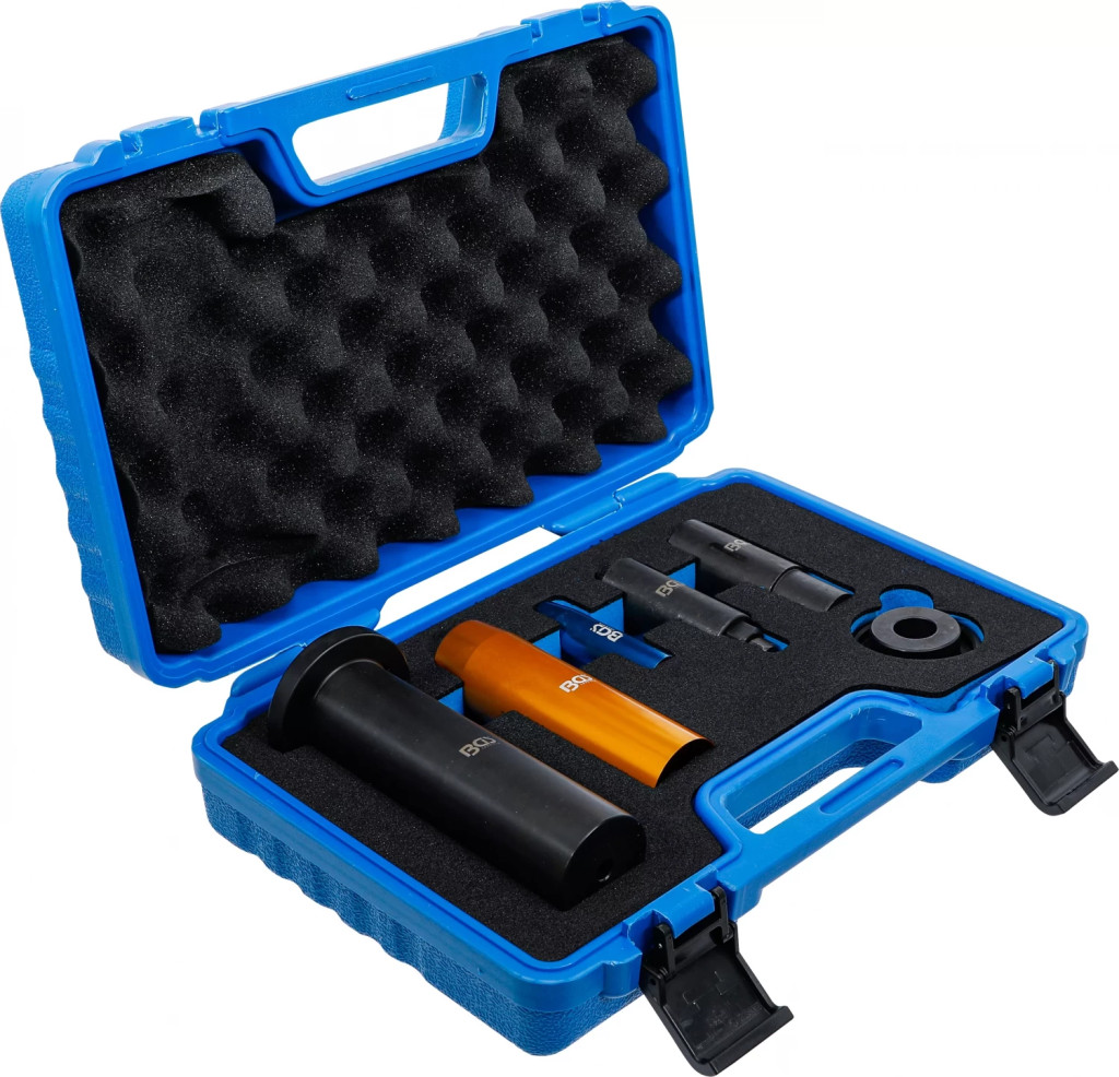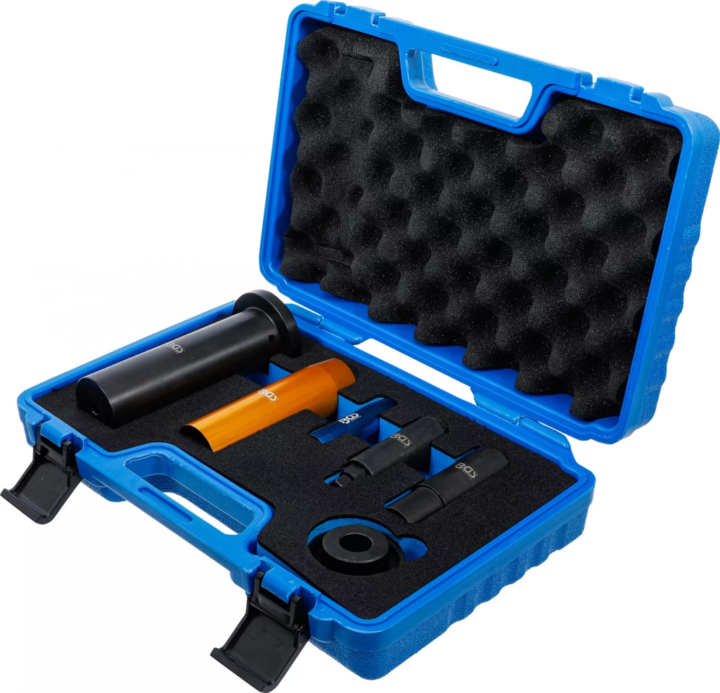 pentru demontarea si montarea inelelor de etansare arbori la arborele de actionare si la arborele de antrenareAdecvata pentru:Ford - cutii de viteze cu 6 trepte cu ambreiaj dublu cu discuri uscate DPS6 / 6DCT250Montat în urmatoarele modele de vehicule:Ford Focus (2012-2019)Ford Fiesta (2008-2019)Ford B-Max (2012-2019)Ford EcoSport (2013-2019)Pachet de livrare:1 extractor pentru garnitura inelara de etansare a arborelui interior de intrare; se utilizeaza precum OEM 307 6731 ghidaj pentru garnitura inelara de etansare a arborelui interior de intrare; se utilizeaza precum OEM 307 6741 scula de presare pentru garnitura inelara de etansare a arborelui interior de intrare; se utilizeaza precum OEM 307 6741 extractor pentru garnitura inelara de etansare a arborelui exterior de intrare; se utilizeaza precum OEM 307 6721 scula de presare pentru garnitura inelara de etansare a arborelui exterior de intrare; se utilizeaza precum OEM 307 6721 scula de presare pentru garnitura inelara a arborelui de actionare; se utilizeaza precum OEM 307 671