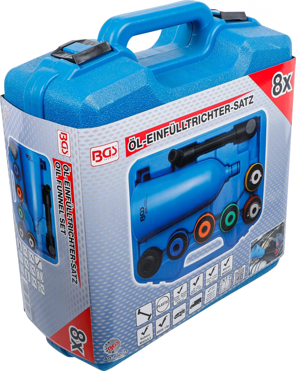 faciliteaza o umplere rapida fara deversareideal pentru multe modele noi de vehiculepâlnie 2 litri cu adaptor pentru un spectru larg de utilizariadaptor codificat colorat pentru deschiderea de umplere uleiprelungitor în unghi cu functie de basculare pentru locurile greu accesibile Adaptoare pentru urmatoarele vehicule:Adaptor baioneta pentru Audi, BMW, Porsche, Mercedes-Benz, Porsche, Volvo, VWAdaptor filetat M42 x 4,5 pentru SubaruAdaptor filetat M37 x 3,0 pentru Toyota, Lexus, Scion, PontiacAdaptor filetat M35 x 4,0 pentru MazdaAdaptor filetat M32 x 3,5 pentru Dodge, Honda, Acura, Nissan, Jaguar, FordAdaptor baioneta pentru Toyota si Lexus 3,0 si 3,3 L V6