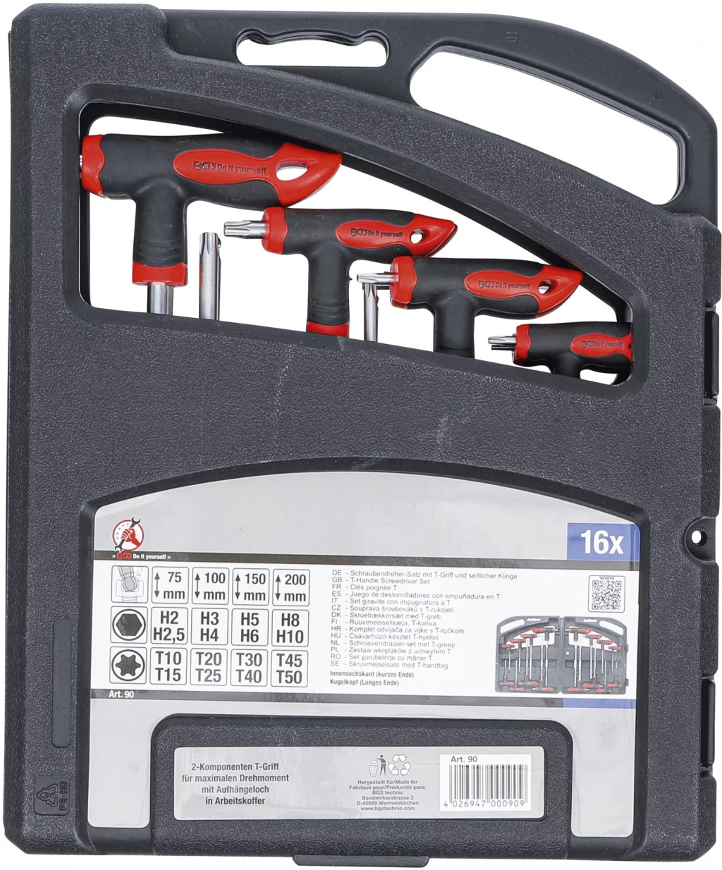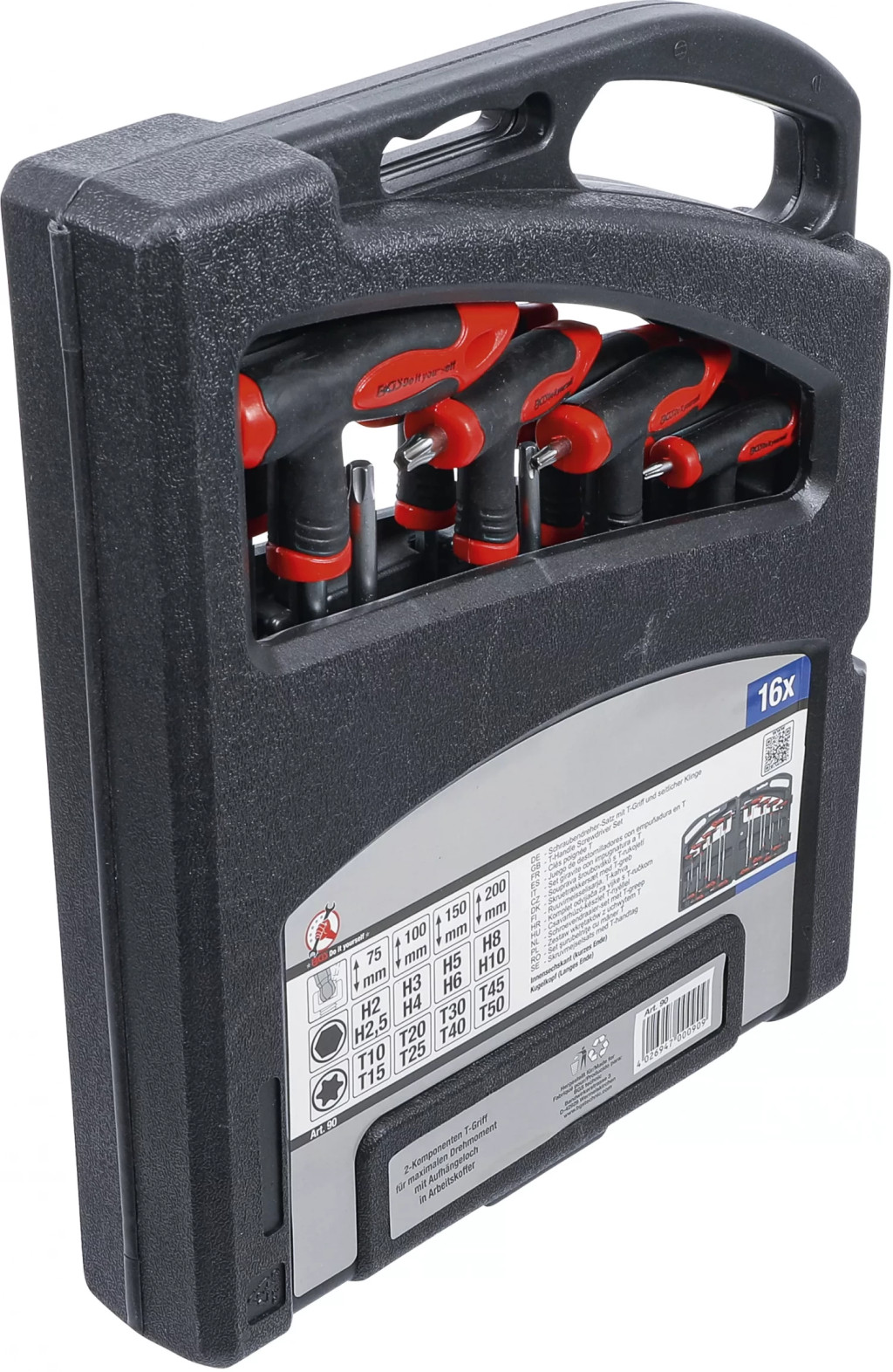 Antrenare hexagon interior, capatul lung cu cap sfericPachet de livrare:Şurubelnita cu mâner T si lama laterala, hexagon interior 2 mm, lungime 75 mmŞurubelnita cu mâner T si lama laterala, hexagon interior 2,5 mm, lungime 75 mmŞurubelnita cu mâner T si lama laterala, hexagon interior 3 mm, lungime 100 mmŞurubelnita cu mâner T si lama laterala, hexagon interior 4 mm, lungime 100 mmŞurubelnita cu mâner T si lama laterala, hexagon interior 5 mm, lungime 150 mmŞurubelnita cu mâner T si lama laterala, hexagon interior 6 mm, lungime 150 mmŞurubelnita cu mâner T si lama laterala, hexagon interior 8 mm, lungime 200 mmŞurubelnita cu mâner T si lama laterala, hexagon interior 10 mm, lungime 200 mmŞurubelnita cu mâner T si lama laterala, Profil T (pentru Torx) T10, lungime 75 mmŞurubelnita cu mâner T si lama laterala, Profil T (pentru Torx) T15, lungime 75 mmŞurubelnita cu mâner T si lama laterala, Profil T (pentru Torx) T20, lungime 100 mmŞurubelnita cu mâner T si lama laterala, Profil T (pentru Torx) T25, lungime 100 mmŞurubelnita cu mâner T si lama laterala, Profil T (pentru Torx) T30, lungime 150 mmŞurubelnita cu mâner T si lama laterala, Profil T (pentru Torx) T40, lungime 150 mmŞurubelnita cu mâner T si lama laterala, Profil T (pentru Torx) T45, Mlungime 200 mmŞurubelnita cu mâner T si lama laterala, Profil T (pentru Torx) T50, lungime 200 mm