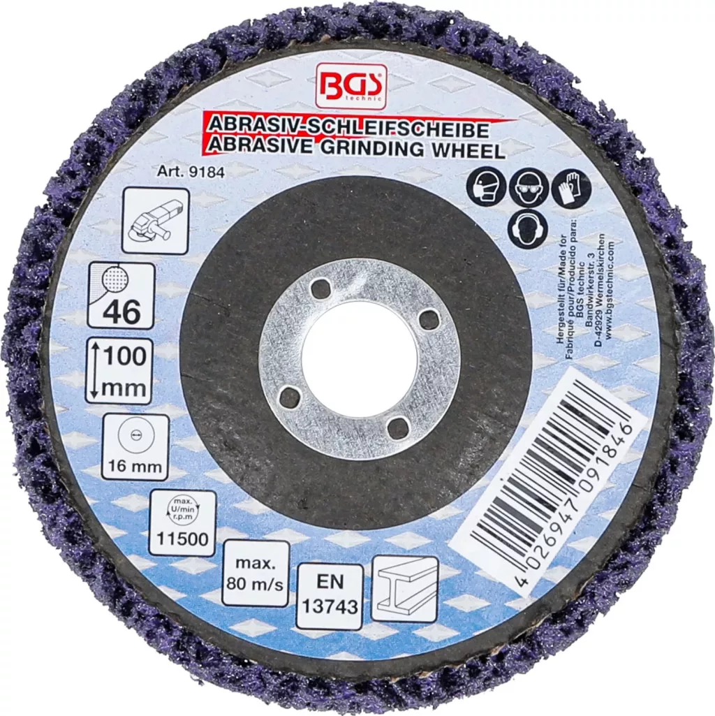 ideal pentru îndepartarea ruginii si a lacurilor/vopseluriloradecvat pentru polizor pentru taiere cu aer comprimat (BGS 3268)Turatia max. 11.500 rot/min (max. 80 m/s)Material carborund, granulatie 46adecvat pentru polizor pentru taiere cu aer comprimat (BGS 3268)
