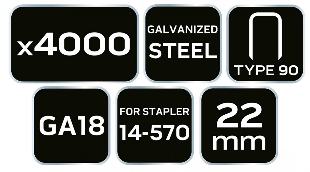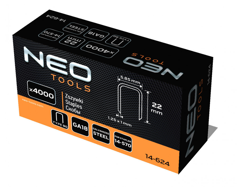 NEO Agrafe pentru capsator galvanizate tip 90, pentru capsator pneumatic (14-570), GA18, 22mm, 4000buc (14-624)