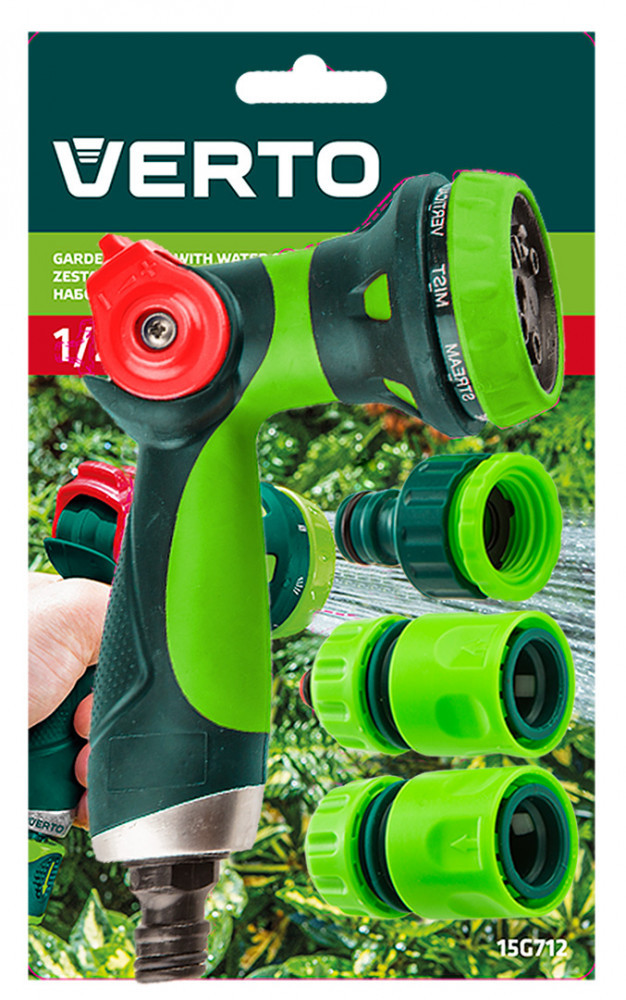 VERTO Öntözőpisztoly csatlakozó, 3 ágúkkal 1/2", 4db, hüvelykujj szabályozás (15G712)