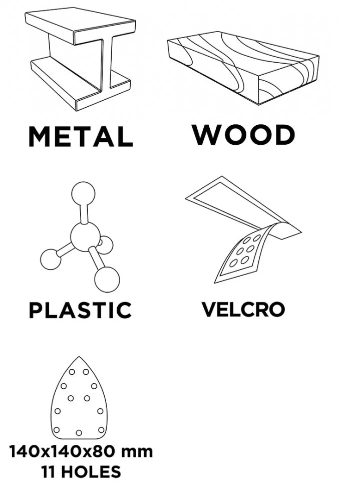 GRAPHITE Hârtie de Șlefuit pentru Șlefuitor Delta, Sistem Velcro, 11 găuri, 140x140x80mm, K40, 5 bucăți (54H009)
