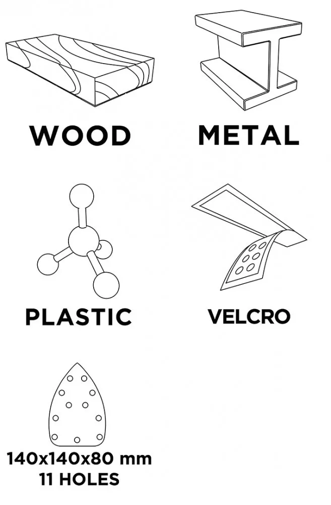 GRAPHITE Hârtie de Șlefuit pentru Șlefuitor Delta, Sistem Velcro, 11 găuri, 140x140x80mm, K60, 5 bucăți (54H010)