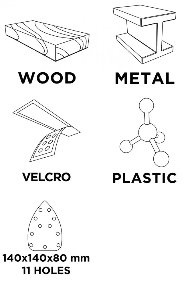 GRAPHITE Hârtie de Șlefuit pentru Șlefuitor Delta, Sistem Velcro, 11 găuri, 140x140x80mm, K100, 5 bucăți (54H012)