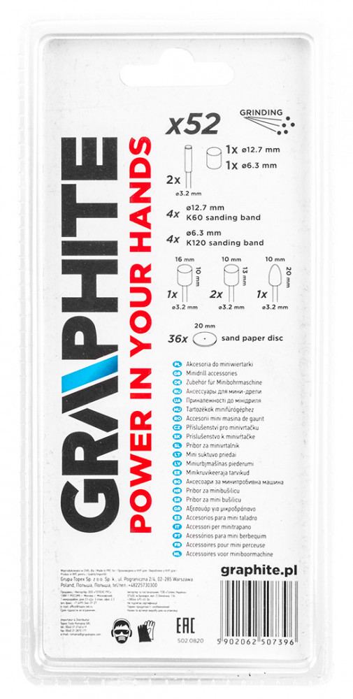 GRAPHITE Set de polizare mini pentru burghiu și polizor, materiale de polizat, șervețele de șlefuit, set 52buc (55H082)