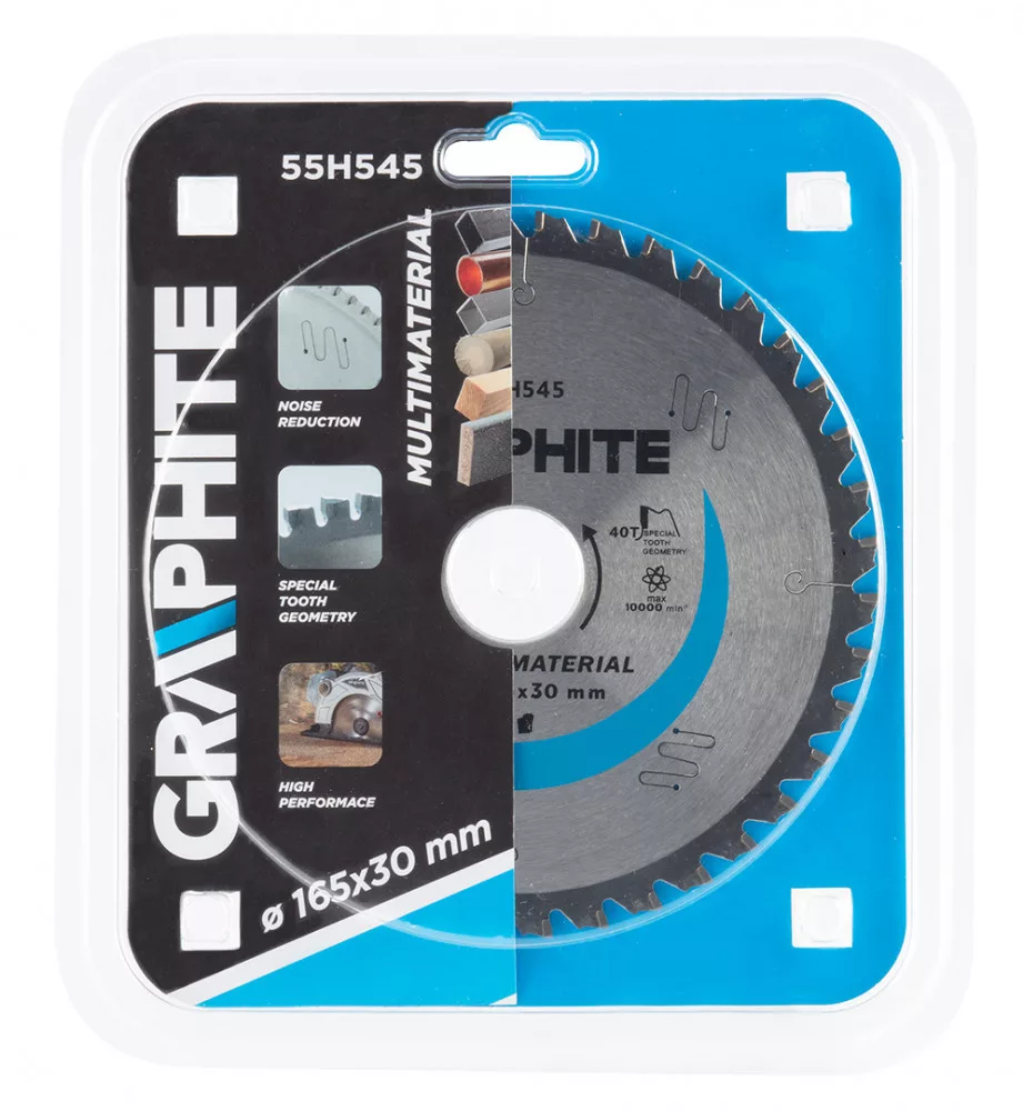 GRAPHITE Fierăstrău circular cu dinți din carbura de tungsten, 165x30mm, 40 de dinți, universal (55H545)