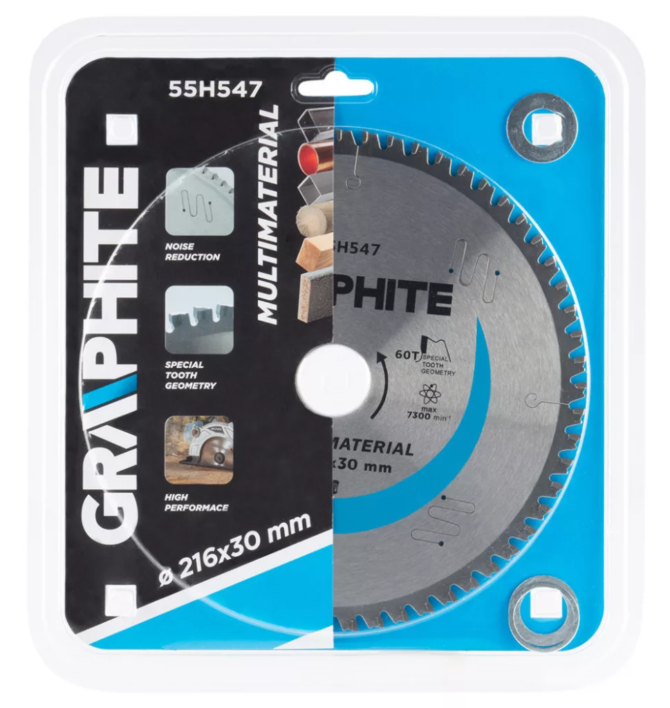 GRAPHITE Fierăstrău circular cu dinți din carbura de tungsten, 216x30mm, 60 de dinți, universal (55H547)