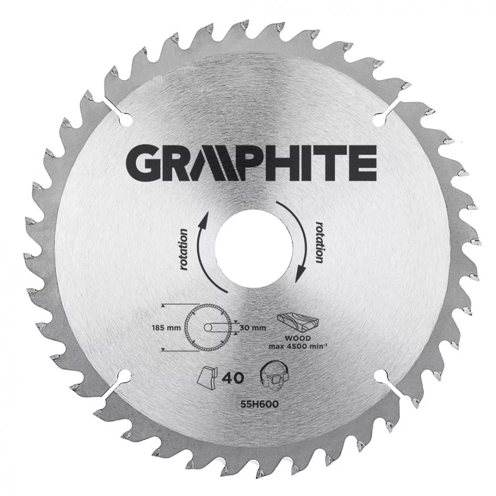 GRAPHITE Fierăstrău circular, din carbura de tungsten, 185x30mm, 40 de dinți (55H600)