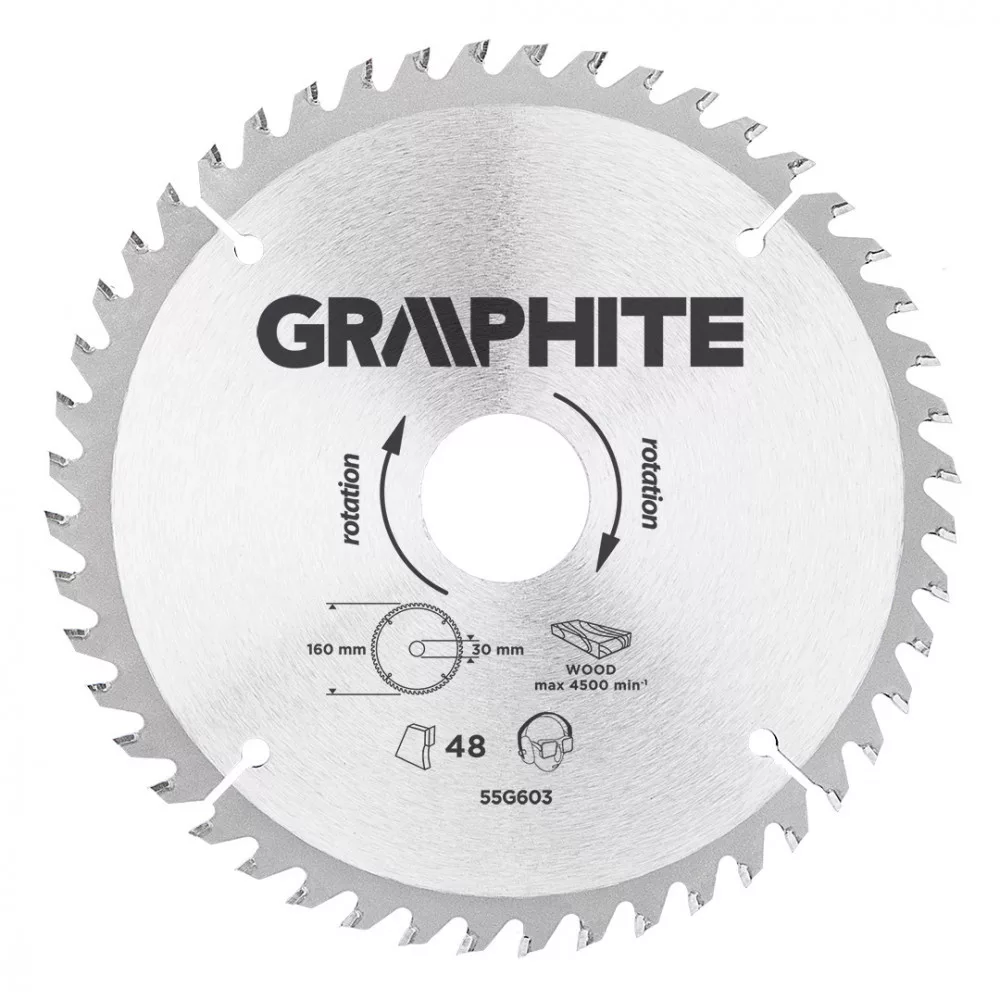 GRAPHITE Fierăstrău circular, din carbura de tungsten, 160x30mm, 48 de dinți (55H603)
