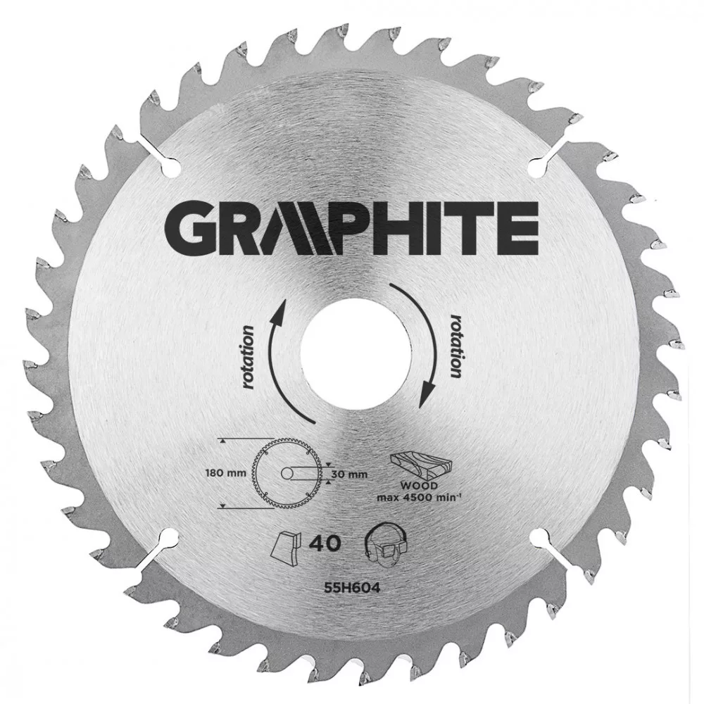 GRAPHITE Fierăstrău circular, din carbura de tungsten, 180x30mm, 40 de dinți (55H604)