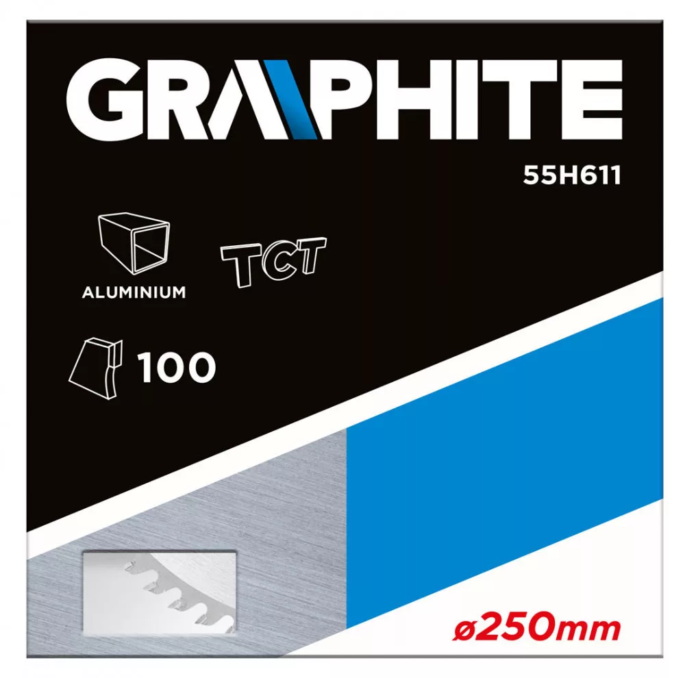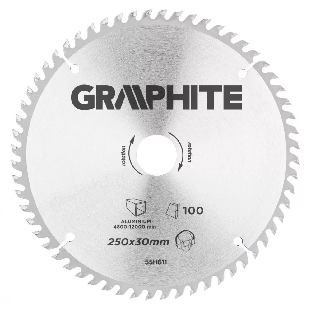 GRAPHITE Fierăstrău circular, din carbura de tungsten, 250x30mm, 100 de dinți, ALU (55H611)