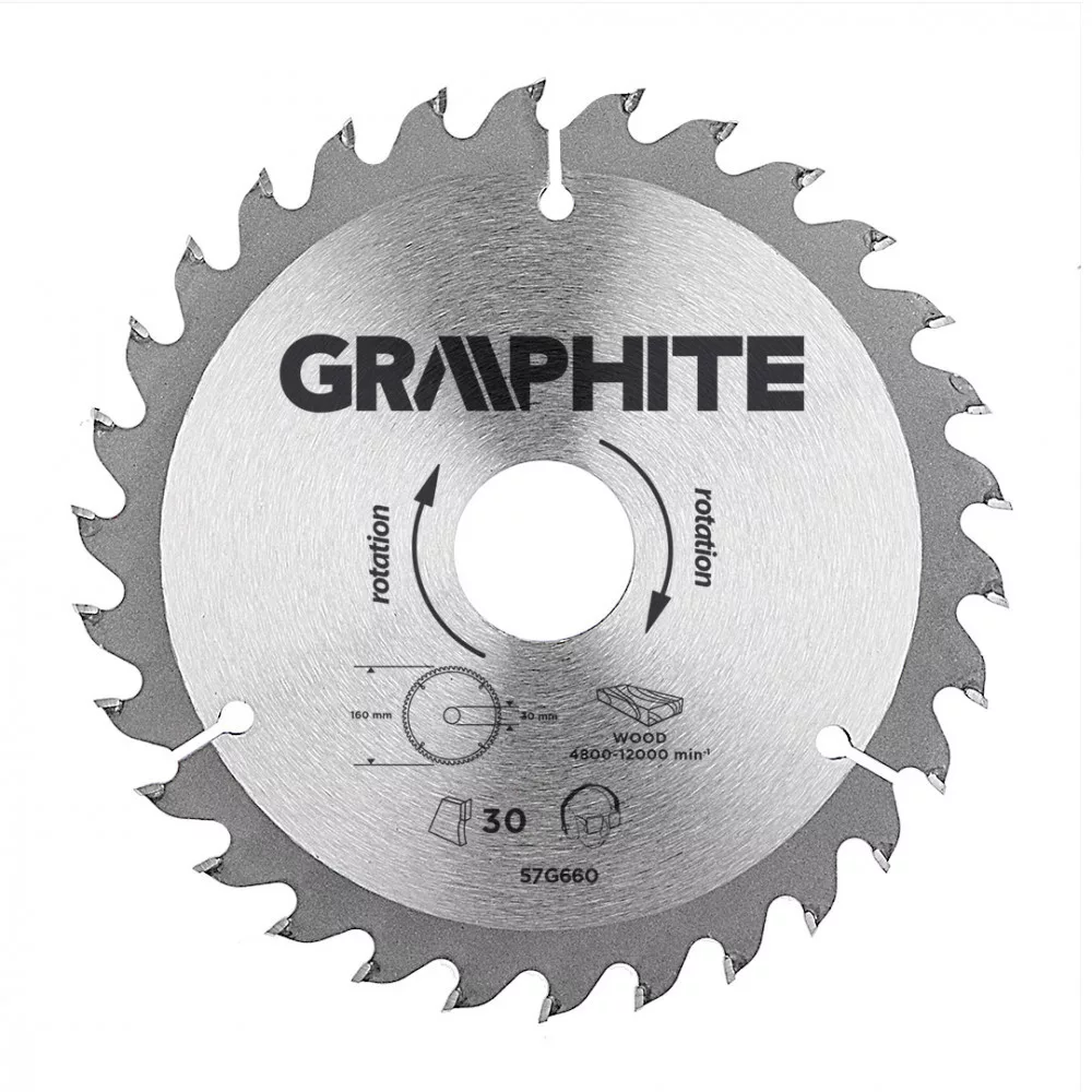 GRAPHITE Pânză de fierăstrău circular cu dinți din carbură, 160x30mm, 30 dinți (57H660)