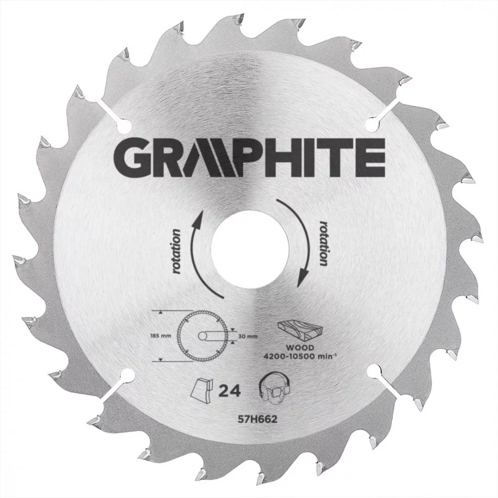 GRAPHITE Fierăstrău circular cu dinți din carbura de tungsten, 185x30mm, 24 de dinți (57H662)